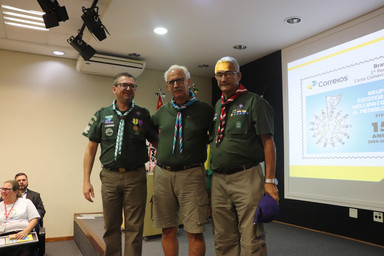 A SPP foi agraciada, através de nosso presidente Mário Xavier Jr., com um lenço escoteiro do Grupo Escoteiro Wellington A. Medeiros e um diploma de Amigo da Filatelia, presenteado a nós pela SOFIA.